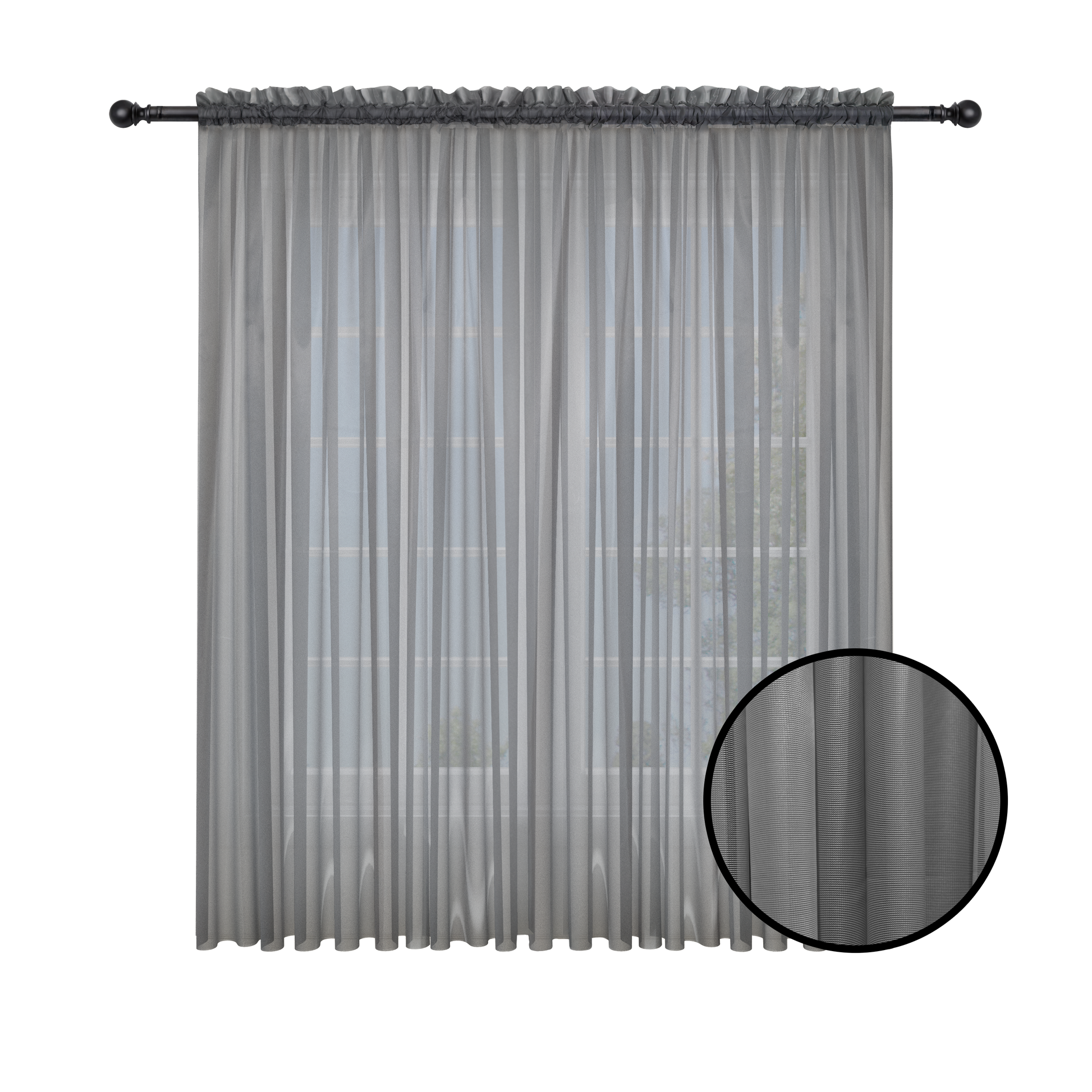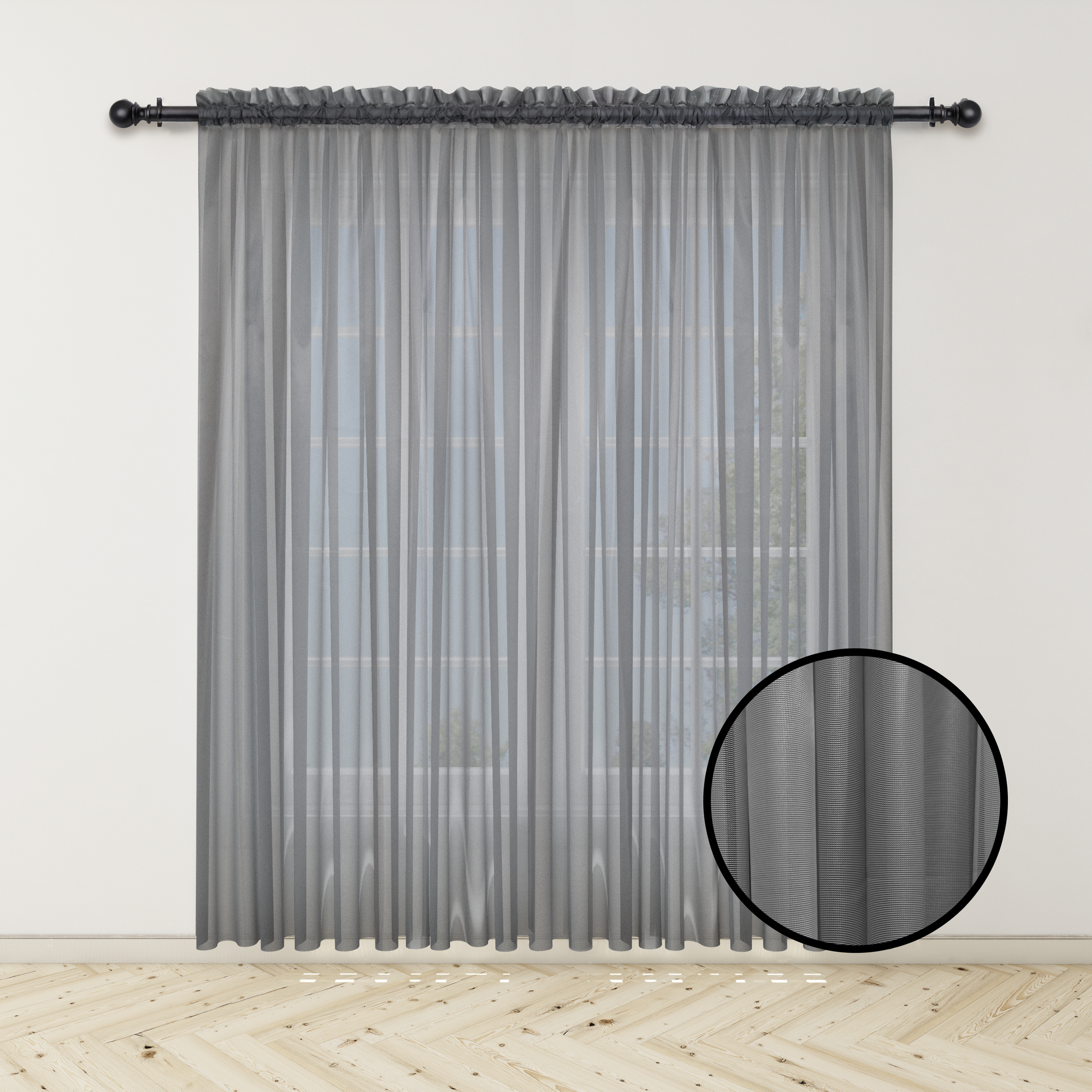 Cortina Velo Suizo Gris Traslúcido - 1 pieza de 300x210 cm / 400x210 cm