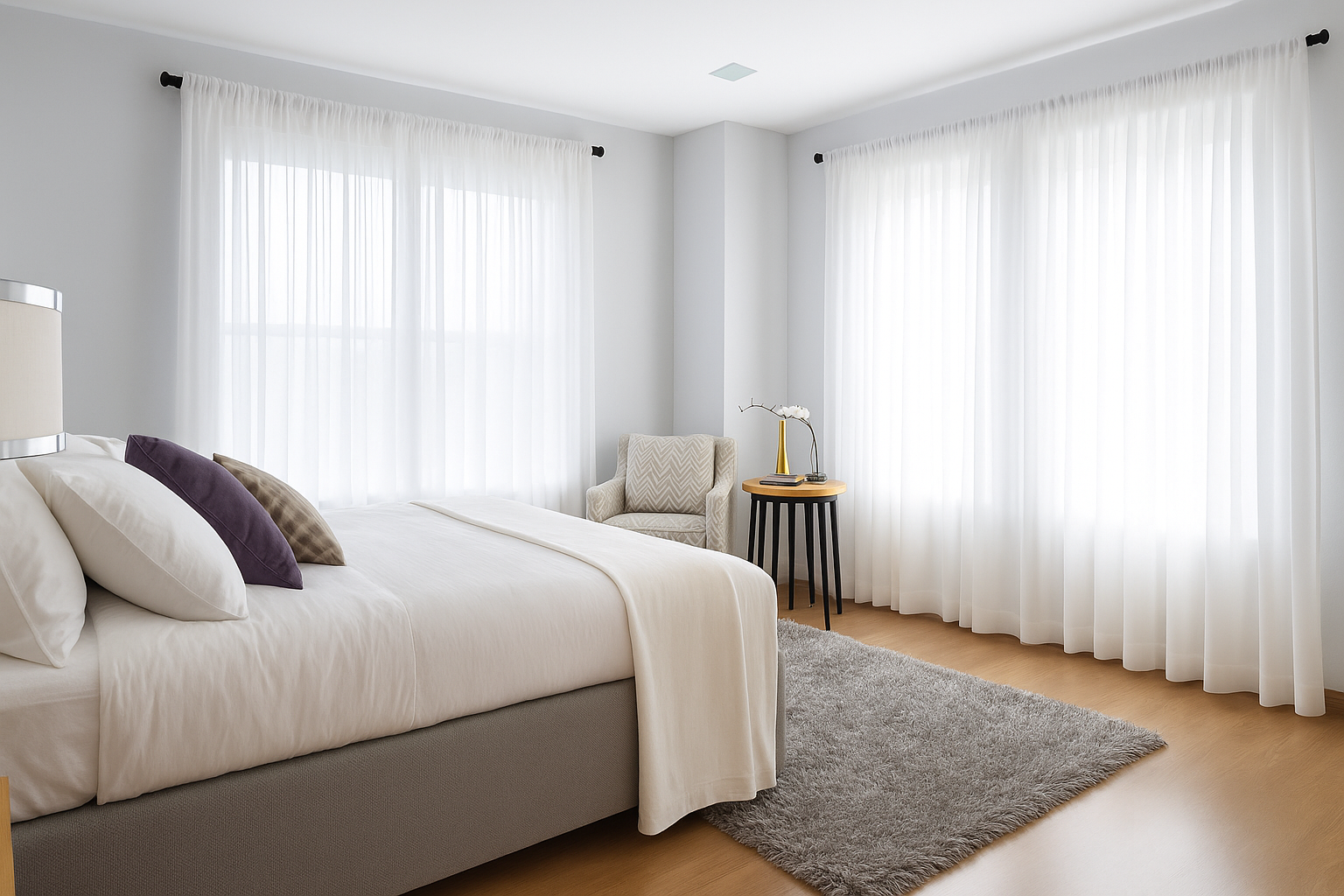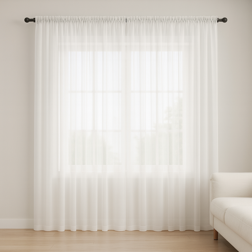 Cortina Velo Suizo Gris Traslúcido - 1 pieza de 300x210 cm / 400x210 cm